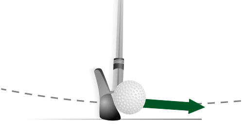 Um einen geraden Ball zu schlagen, sollte der Schlägerweg null sein. Der Schlägerweg trägt zur Kurve des Schlags und der Startrichtung des Balls bei.